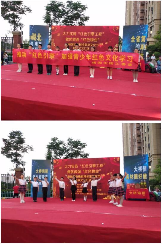杨园街 为了加快推动红色引擎,做优做强红色物业,杨园街党工委带领团工委、国棉社区共同组织了杨园街橡树湾邻里文化节群众文艺汇演,拉近居民关系,加强青少年们学习红色文化。以对话的形式,诉说什么是“中国梦”,以朗诵《我骄傲,我是中国人》,坚定青春年少的理想信念,加强对祖国的自豪感与自信心,激发青少年的爱国热情。 中国的未来 中国之骄傲 武昌青少年展现朝气 青春与活力 我们在行动 !!!