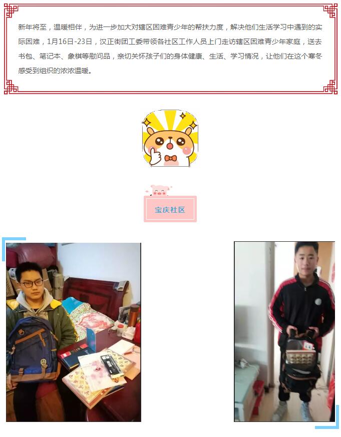 为寒冬添暖 为青春护航 | 汉正街各社区新春走访慰问困难青少年