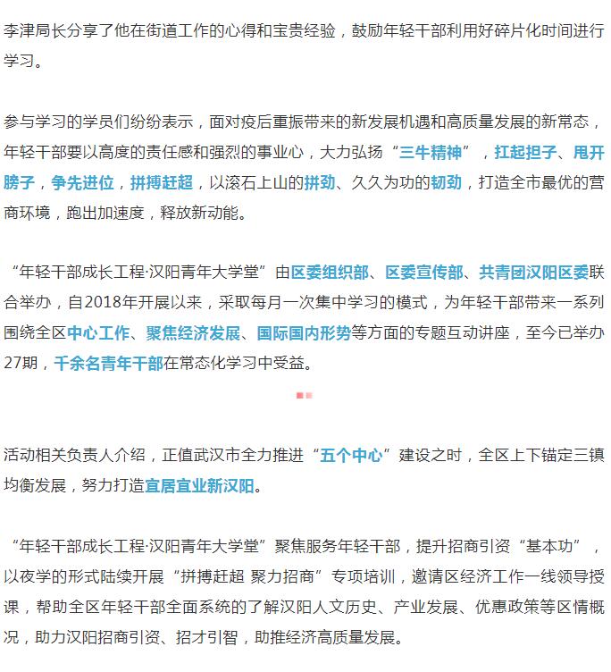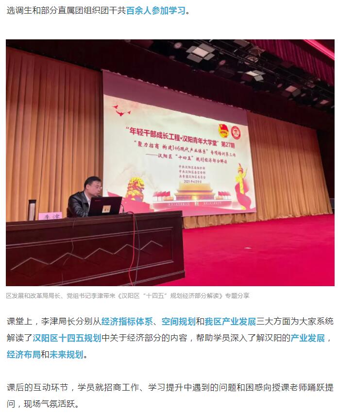 “聚力招商 构建16现代产业体系” 汉阳青年大学堂第27期开讲
