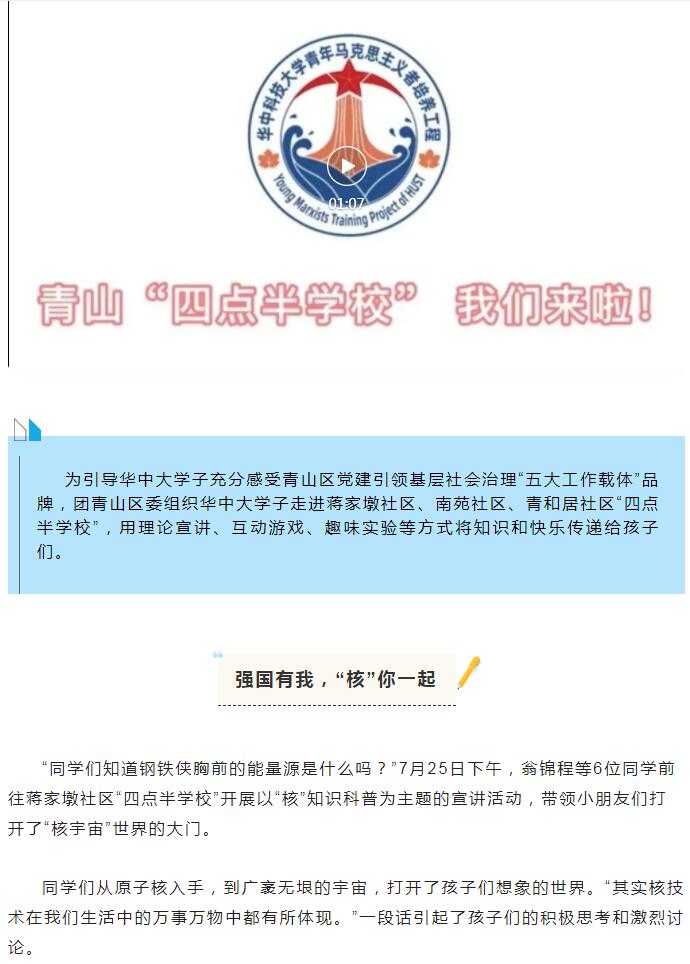 让知识传递,让爱启航 | 华中大学子走进“四点半学校”